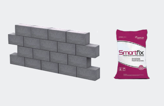 “Smartfix” the finest block jointing mortar with the “Superbond “ Technology. Smartfix is a superior water resistant cement based mortar joint specially formulated for Joining Aerocon AAC Blocks, Solid blocks, hollow blocks , fly-ash etc.